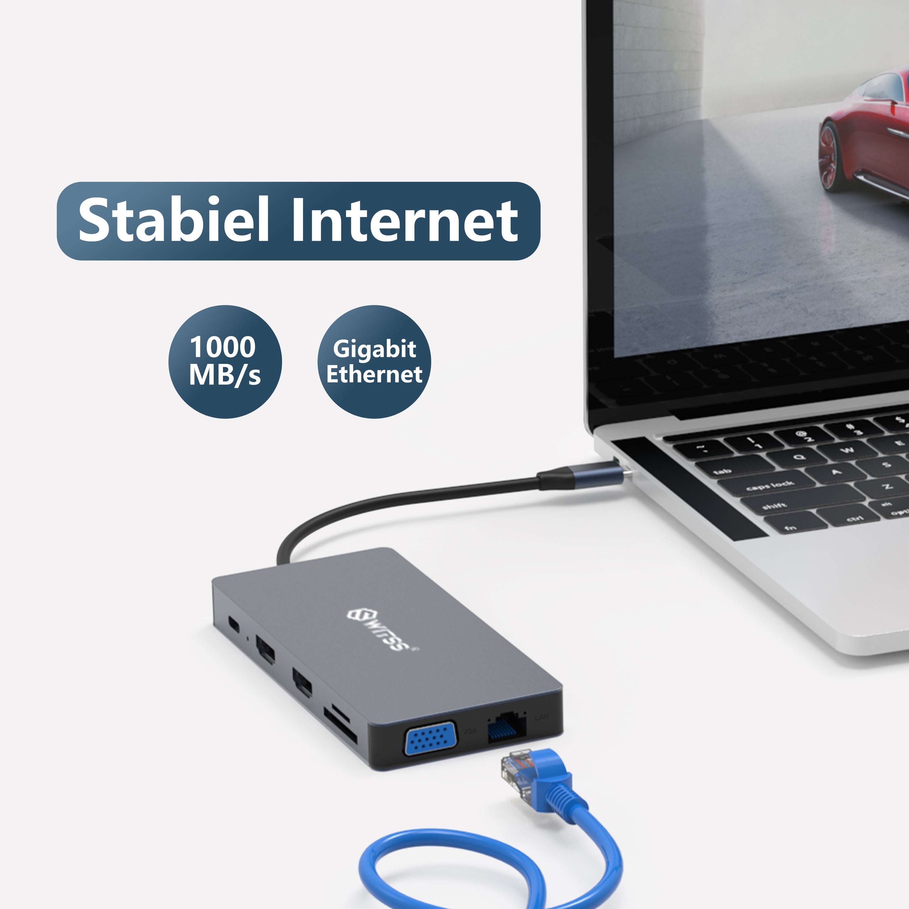 Wil je meer poorten voor je laptop of desktop en tegelijkertijd je werkplek optimaliseren? De Switss®USB-C Hub 12-in-1 biedt een complete oplossing in één compact dockingstation. Dankzij het compacte formaat neem je hem eenvoudig overal mee naartoe, terwijl je profiteert van hoge overdrachtssnelheden via USB-C, USB of Thunderbolt.