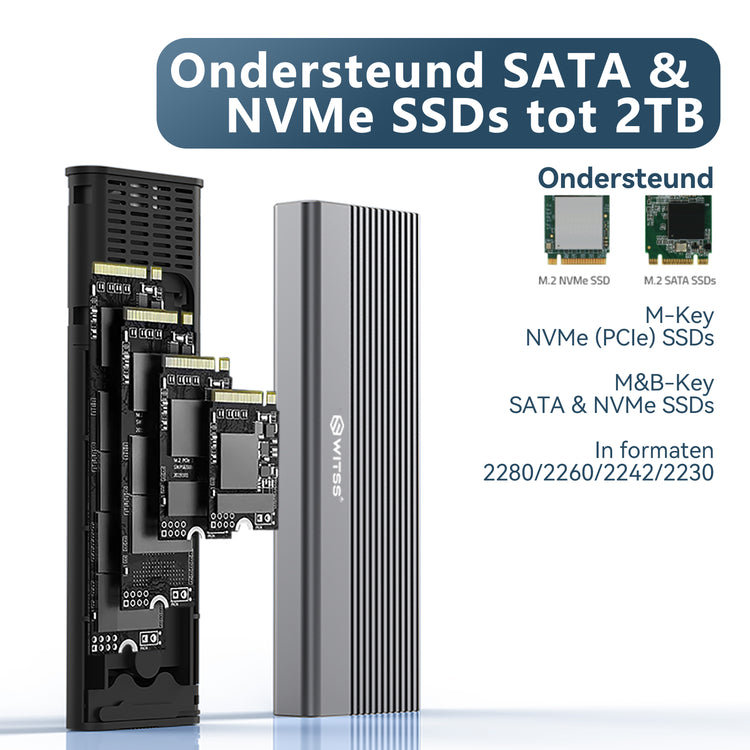 ⚙️ Werkt met NVMe en SATA M.2 SSD's