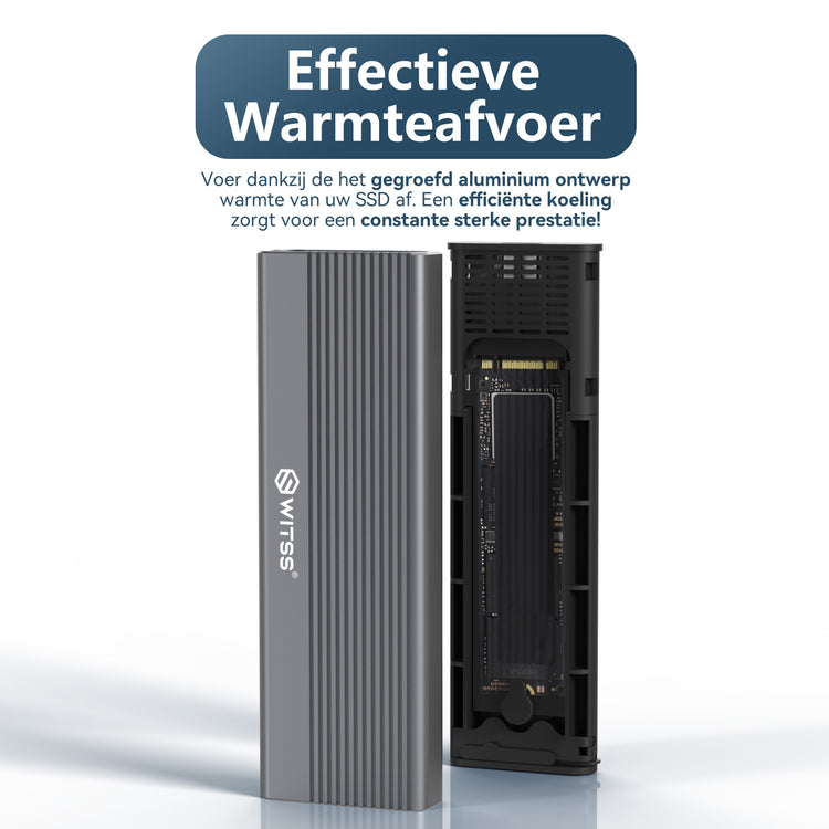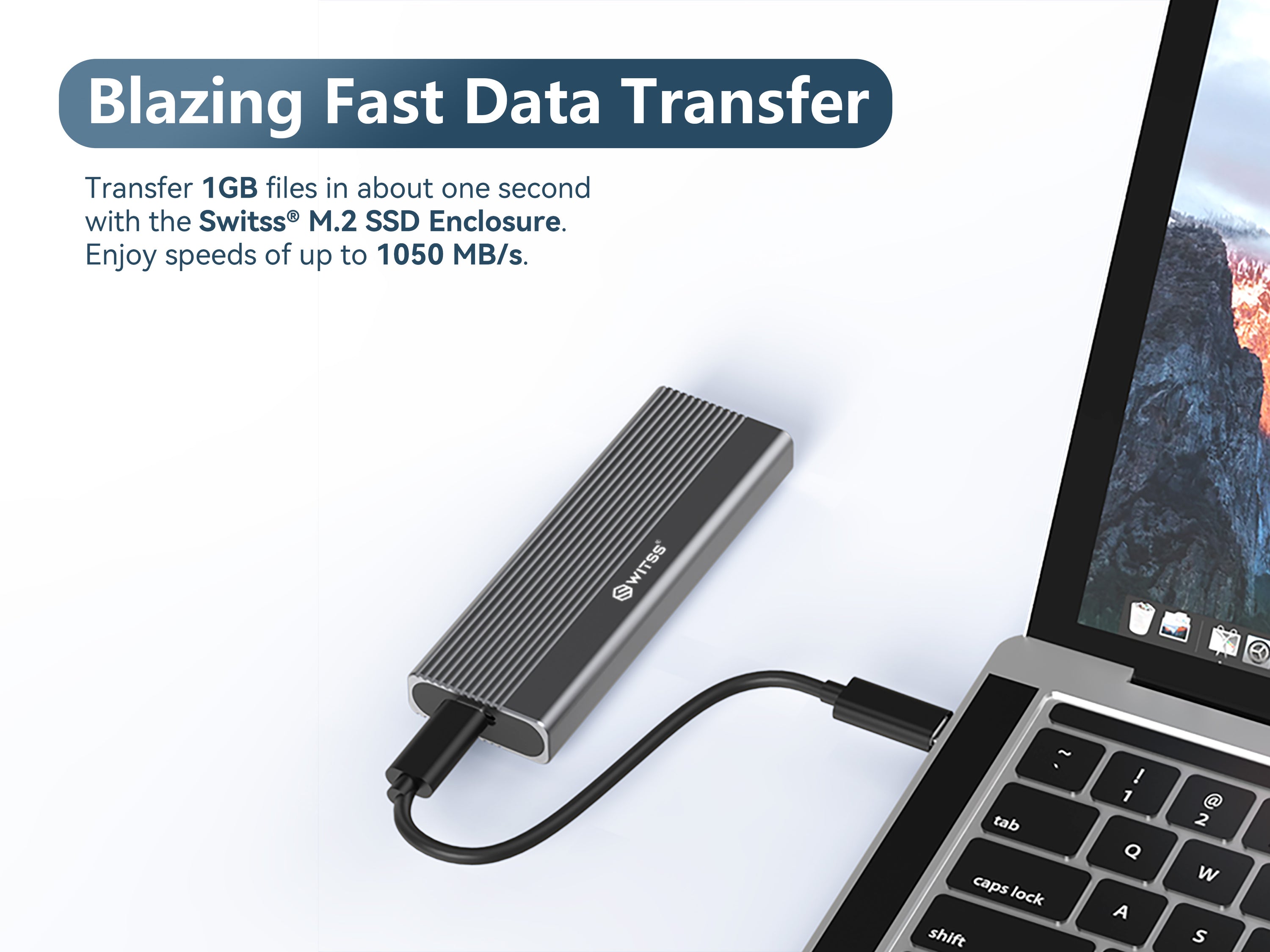 Heb je last van te weinig opslagruimte of wil je grote bestanden snel en veilig overzetten? De Switss® M.2 SSD behuizing verandert jouw interne SSD in een externe M.2 SSD schijf. Dankzij het compacte formaat neem je hem eenvoudig overal mee naartoe, terwijl je profiteert van hoge overdrachtssnelheden via USB-C, USB of Thunderbolt.